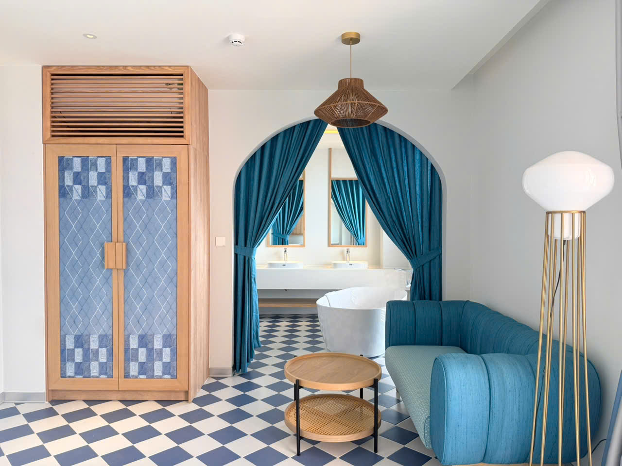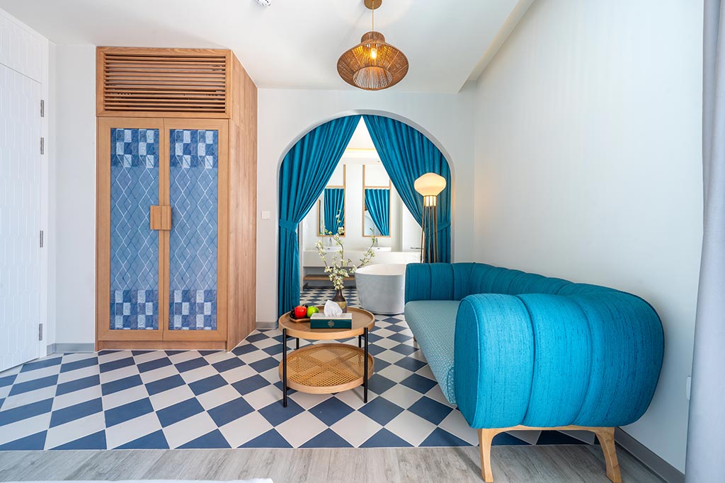 Two-bedroom hotel apartment with sea view, private living area and kitchen. Each bedroom has its own balcony. Suitable for families or groups of up to 4 guests.