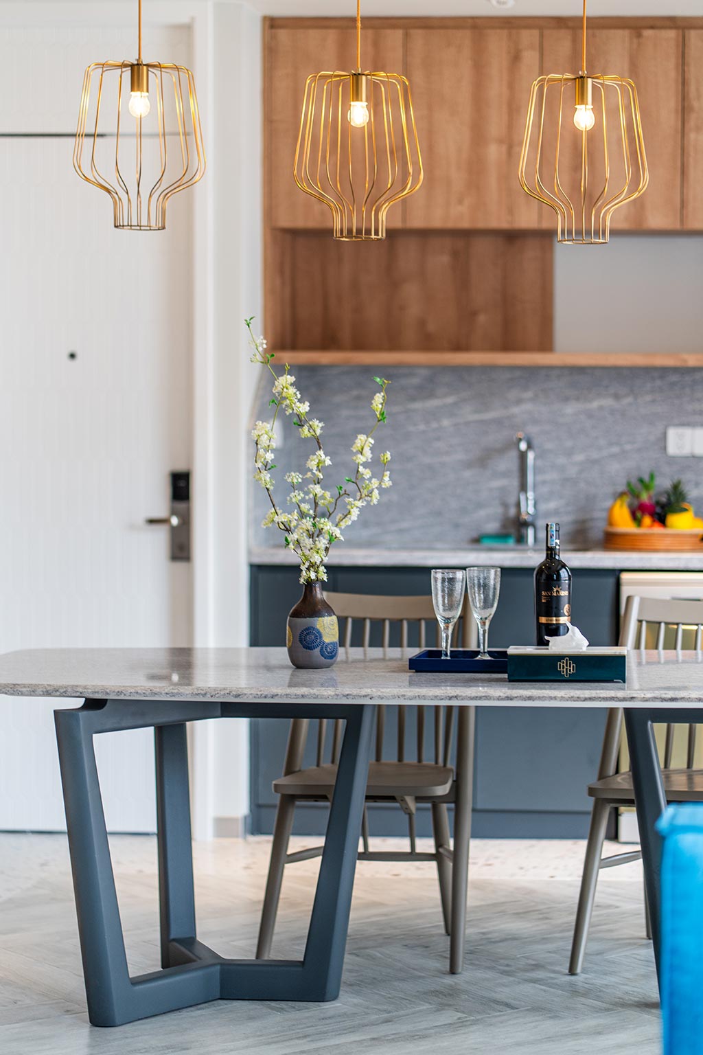 Three-bedroom hotel apartment with spacious living room and kitchen. Panoramic views of sea, street, and mountains. 4 bathrooms. Ideal for large families or groups.