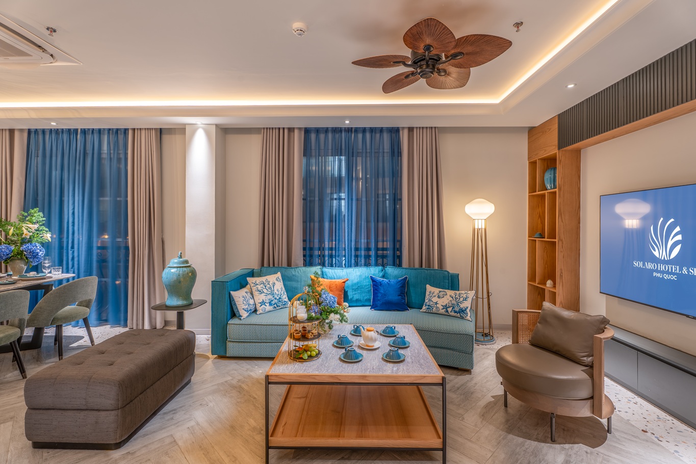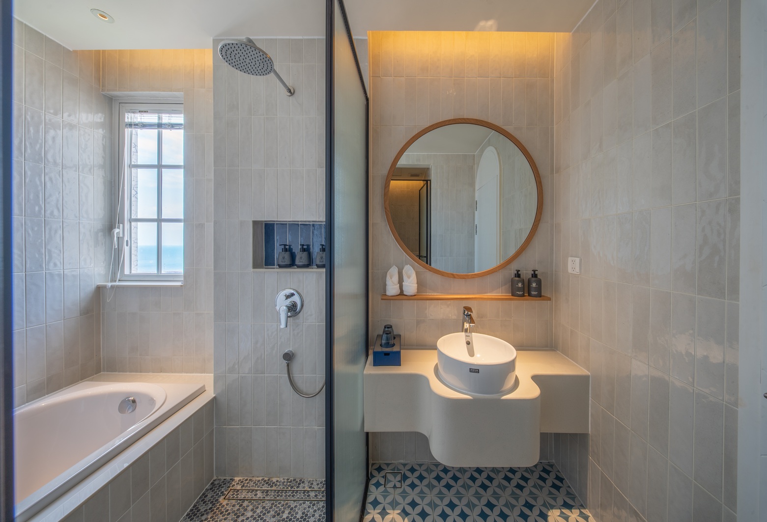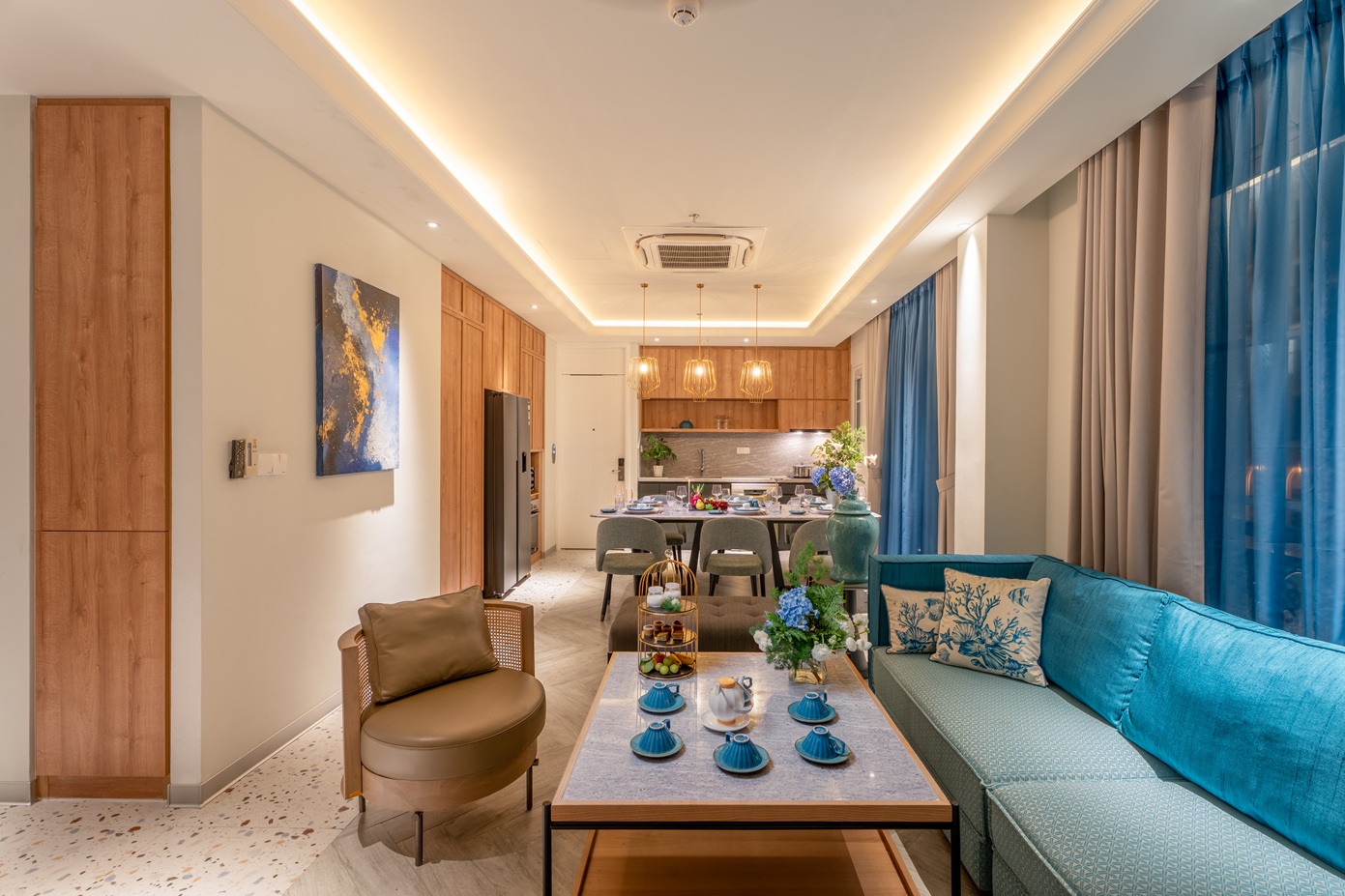 Luxury one-bedroom apartment with sea view, sofa, private kitchen, balcony, and a bathtub with sea view. Ideal for 2 guests, perfect for upscale stays or long-term stays.