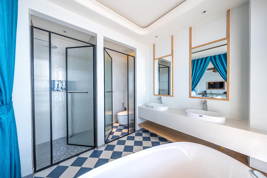 Luxury one-bedroom apartment with sea view, private kitchen, 1 balcony, and bathtub with sea view. Suitable for 2 guests, ideal for upscale or extended stays.